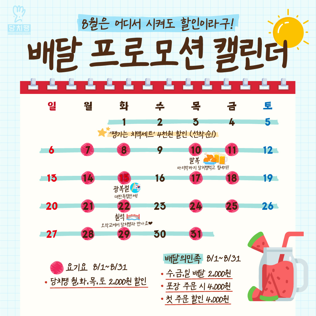 💌[당치땡 8월 프로모션 캘린더]💌